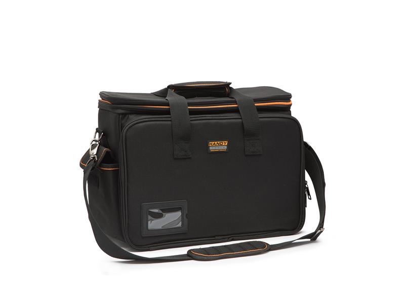 Multifunkční taška (na nářadí, foto doplňky, osobní věci apod.) patří mezi novinky na trhu vzhledem k široké nabízené možnosti použití. Po otevření taška nabízí 3 části, ve střední části s pevněnými stěnami jsou 3 fixní kapsy na suchý zip, které lze vyjmout. Vrchní strana s dvojitým zipem má kapsu se síťkou. Obě boční části jsou na zip, mají boční kapsy, odkládací místa s gumičkami a spoustu dalších odkládacích míst. Všechno to je určeno pro co nejpohodlnější nošení a uložení. Předu a vzadu jsou hloboké kapsy na suchý zip. Tašku lze nosit v ruce nebo na rameni pomocí nastavitelného širokého popruhu s vycpávkou.