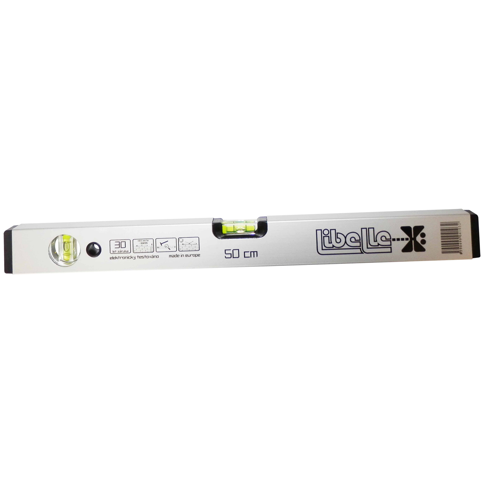 Libely jsou upevněny pomocí rozpínací úchytky, která zaručuje její přesné, pevné a zároveň pružné usazení. Zesílené pružné koncovky slouží k tlumení nárazů při pádu. Vodováhy jsou vyrobeny z plochého hliníkového profilu rozměr 48x22mm, povrch je upraven eloxováním. Optická libela zvyšuje přesnost měření - každý kus je elektronicky testován a má své čislo ISO 9001 - kapalina v libele je UV stabilizovaná a fluorescenční pro lepší viditelnost.