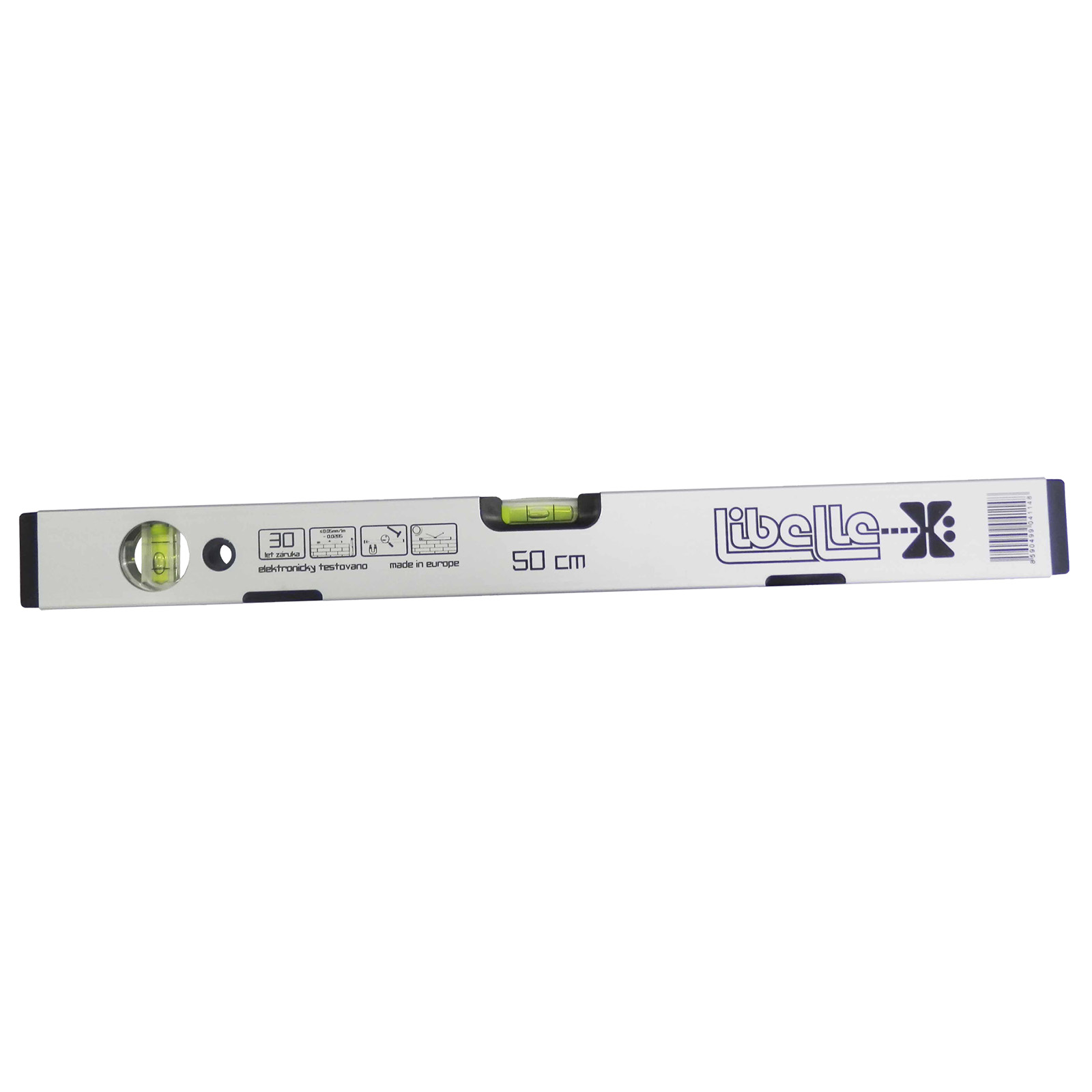 Libely jsou upevněny pomocí rozpínací úchytky, která zaručuje její přesné, pevné a zároveň pružné usazení. Zesílené pružné koncovky slouží k tlumení nárazů při pádu. Vodováhy jsou vyrobeny z plochého hliníkového profilu rozměr 48x22mm, povrch je upraven eloxováním. Optická libela zvyšuje přesnost měření - každý kus je elektronicky testován a má své čislo ISO 9001 - kapalina v libele je UV stabilizovaná a fluorescenční pro lepší viditelnost.