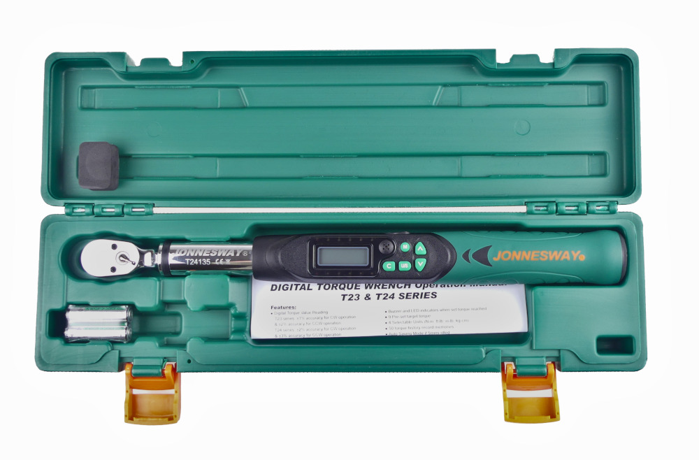 Přesný, digitální momentový klíč JONNESWAY T24135, čtyřhran 3/8“, rozsah 6,8-135 Nm, kalibrovaný, s certifikátem v českém jazyce, dodáván v plastovém kufříku.