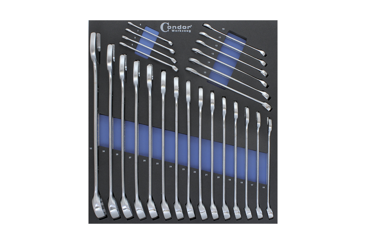 modul 25 dílů, CrV, velikost modulu - 2/3* klíč očkoplochý - 6, 7, 8, 9, 10, 11, 12, 13, 14, 15, 16, 17, 18, 19, 20, 21, 22, 23, 24, 25, 26, 27, 28, 30, 32 mm* rozměr šxhxv - 377 x 395 x 35 mm