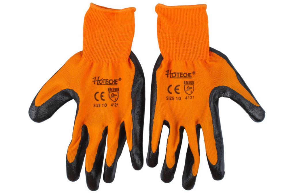 Ochranné pracovní rukavice značky Hoteche vyrobené z polyesteru a nitrilu.