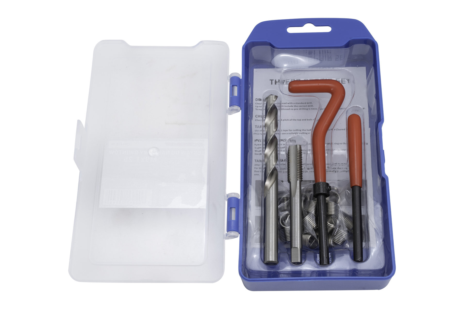<>Vŕtacie korunky a závitníky sú vyrobené z vysoko kvalitnej ocele HSS 4341. Jednostupňový závitník vyreže závit, do ktorého sa naskrutkuje vložka so špirálovým závitom z nehrdzavejúcej ocele. na naskrutkovanie vložky sa používa špeciálny skrutkovač, na odstránenie výstupku vo vložke sa používa dierovač.
