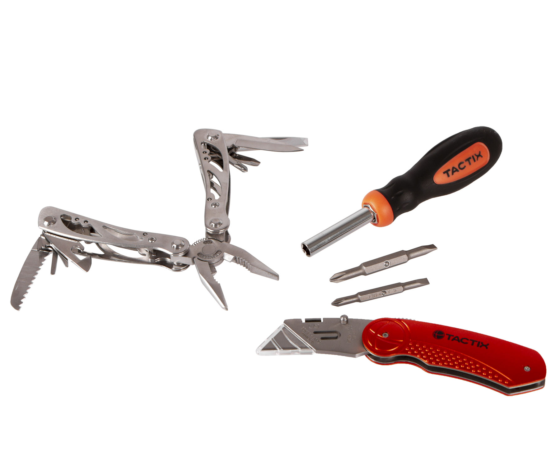 V balení naleznete multifunkční kleště, šroubovák a nůž.