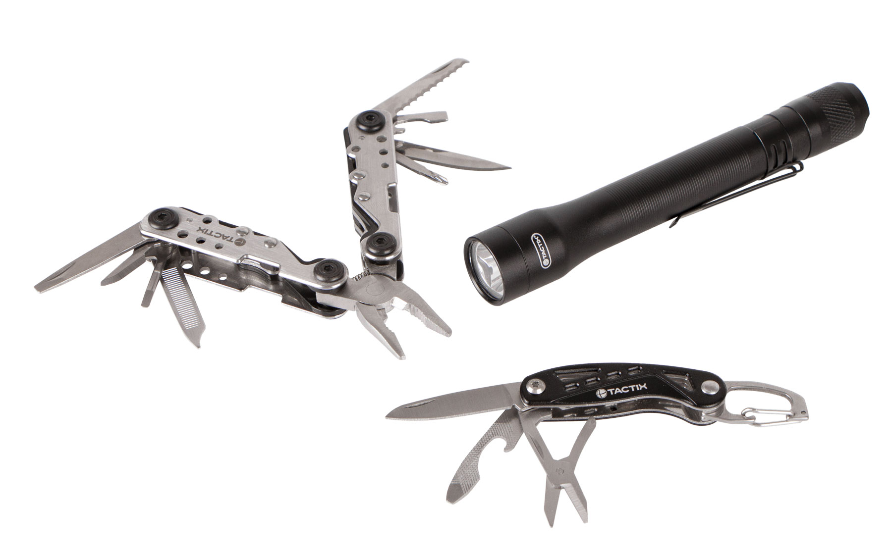 V balení naleznete multifunkční kleště, klíčenku s nožíkem a LED svítilnu.