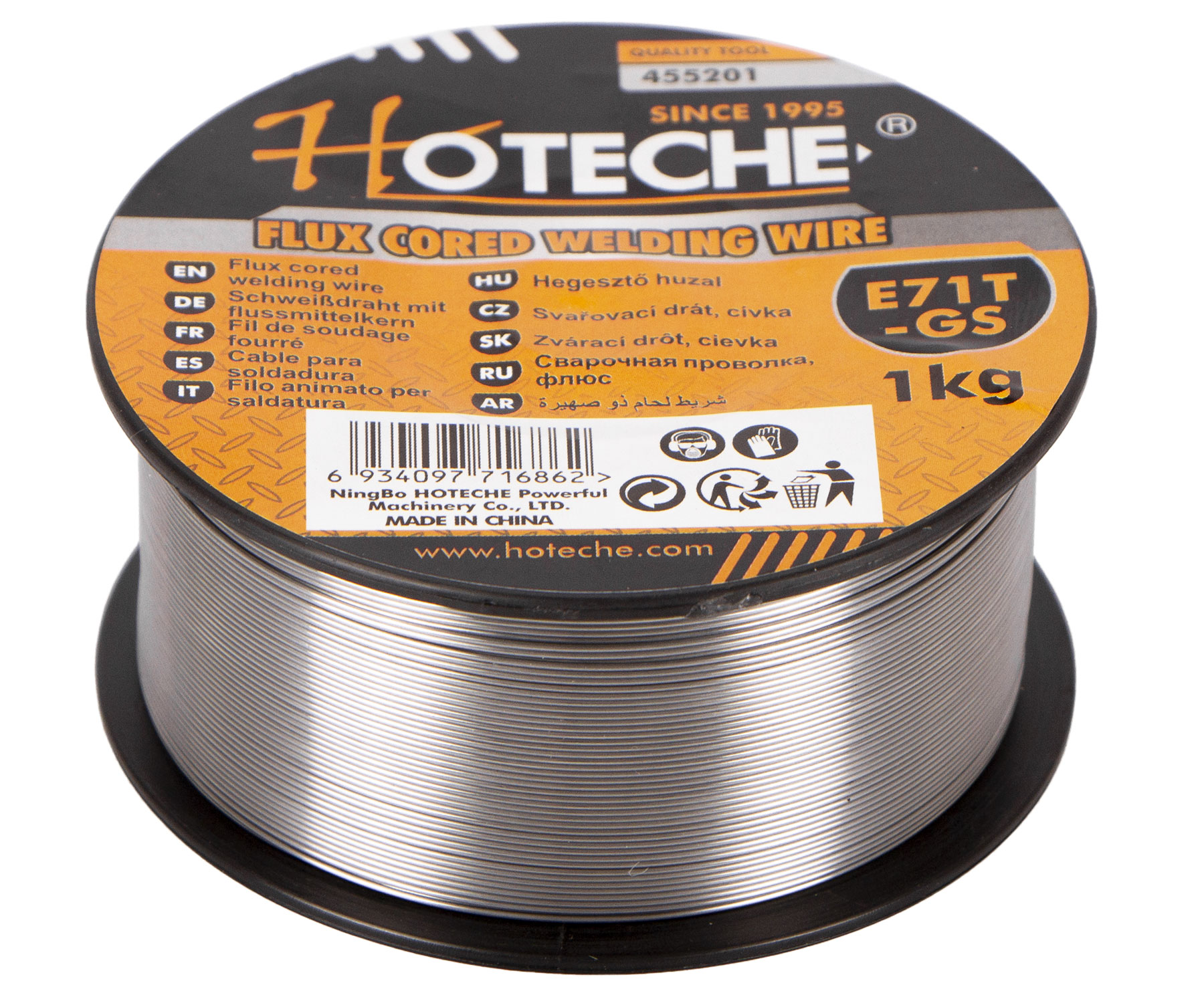 Trubičkový svářecí drát s průměrem 0,8 mm E71T-GS.