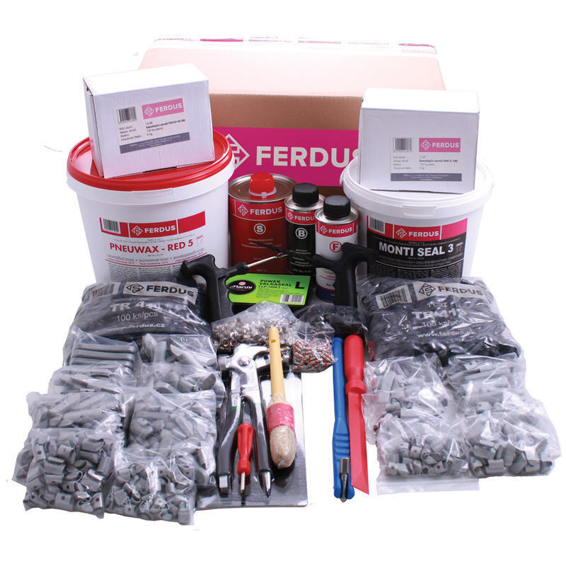 Komplexní sestava sortimentu výrobků pro opravy a vyvážení kol automobilů. Vhodné nejen pro začínající, ale i zavedené podniky, které potřebují koupit větší množství materiálu zaráz.