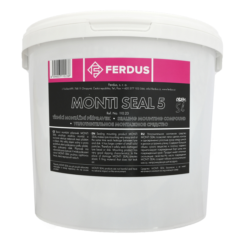 Přípravek má výborné kluzné vlastnosti. V místě poškození vytvoří těsnící montážní pasta MONTI SEAL pružnou výplňovou hmotu, která nepropouští vzduch. K ráfku má nízkou adhezi, která umožní pozdější snadnou demontáž.