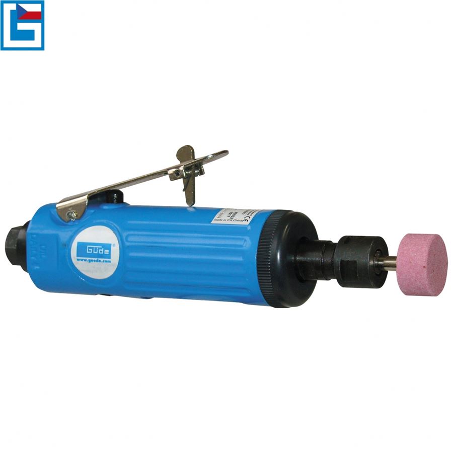 Vysokootáčková bruska, určená k broušení, frézování, leštění nebo gravírování v prostředí zámečnických, dřevozpracujících, modelářských dílen apod. Plynulá regulace otáček pomocí ovládací páčky. Konstrukce: upínací kleštiny (-> 2, vnitřní průměr: 3/6 mm), ovládací páčka s bezpečnostní pojistkou, ergonomicky tvarovaná rukojeť se sítkem pro filtraci stlačeného vzduchu/průduchy zpětného odtahu odpadního vzduchu. Složení sady: brusné kolíky různých tvarů/zrnitostí (10), vsuvka 1/4'', montážní klíče, transportní plastový kufřík.