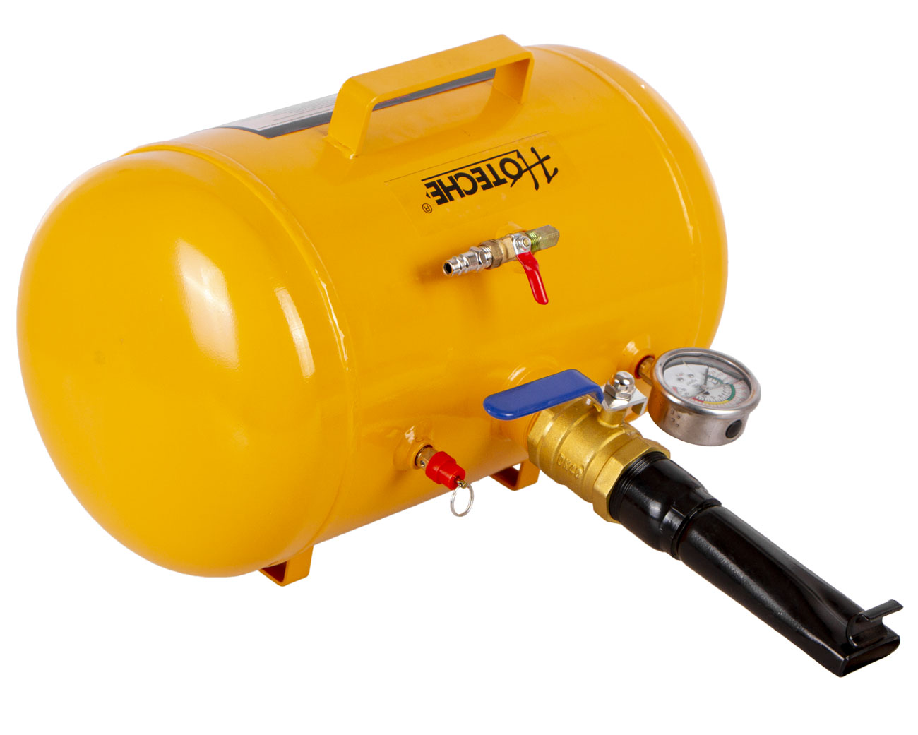 Vzduchové dělo je vybaveno nádobou o objemu 19 litrů, manometrem pro kontrolu tlaku a plnícím ventilem.