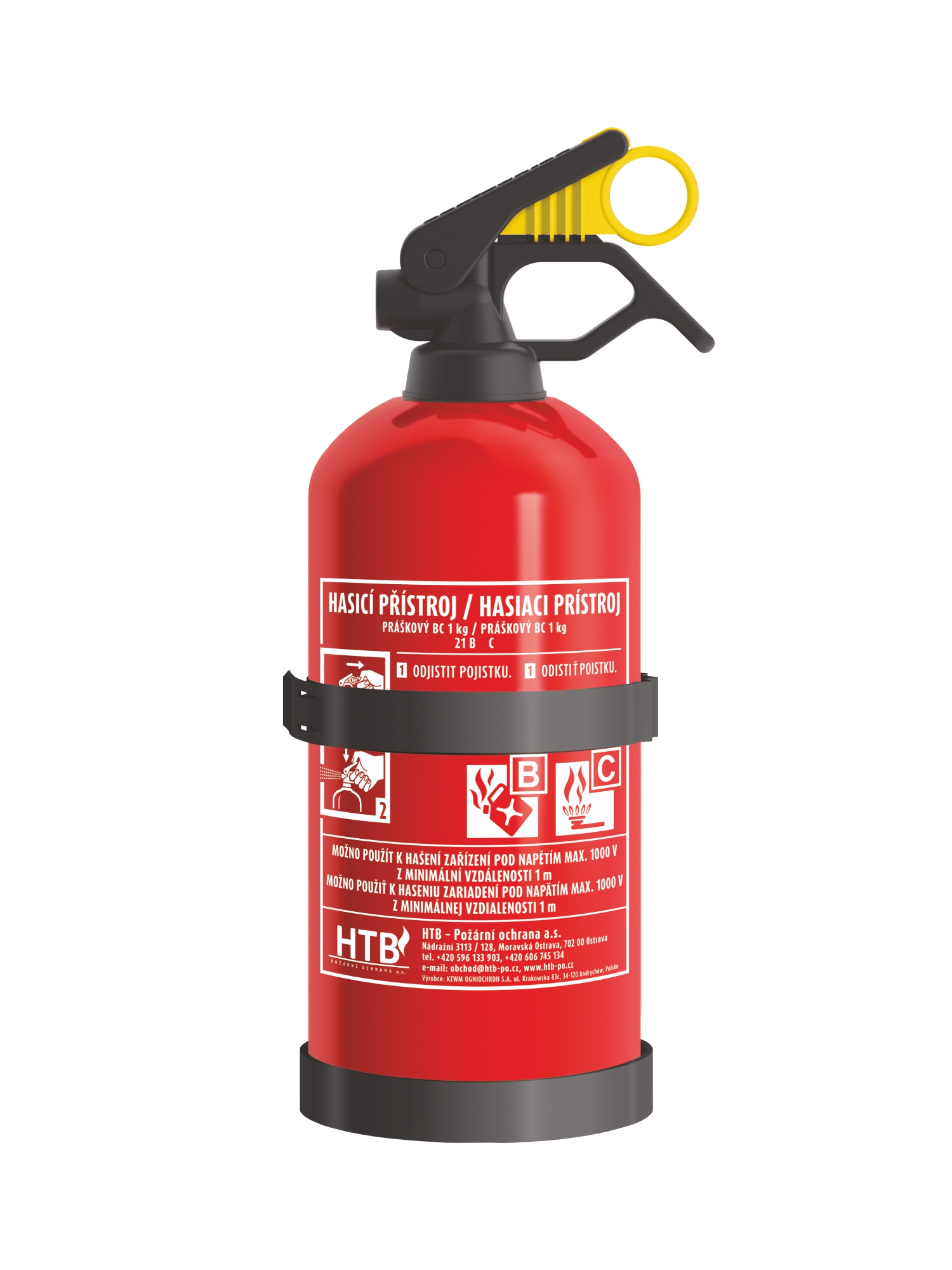Hasicí přístroj práškový s držákem, který má univerzální použití. Je ideální do automobilů, lze jej použít k hašení téměř veškerého materiálu s kterým se setkáváme - možno použít k hašení zařízení pod napětím max.1000V z minimální vzdálenosti 1m.
