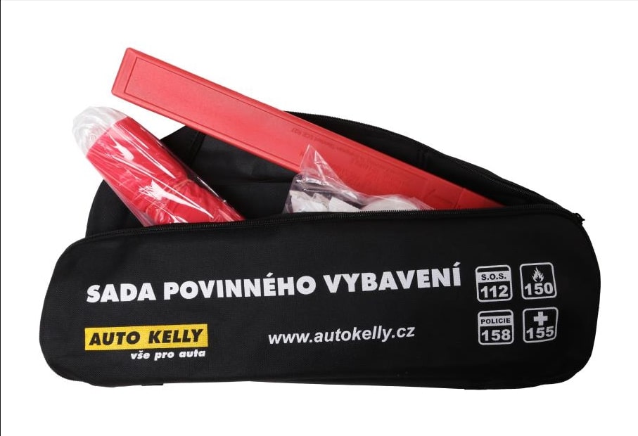 Sada obsahuje - náplň do autolékárničky dle poslední vyhlášky MD, výstražný trojúhelník a tažné lano o nosnosti 1,6t.