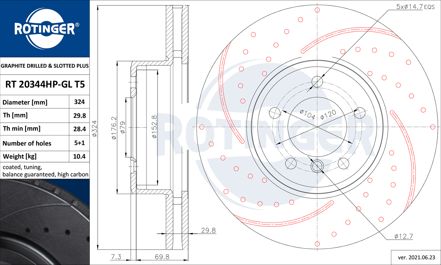 ROTINGER RT 20344HP-GL T5 - Brzdový kotúč