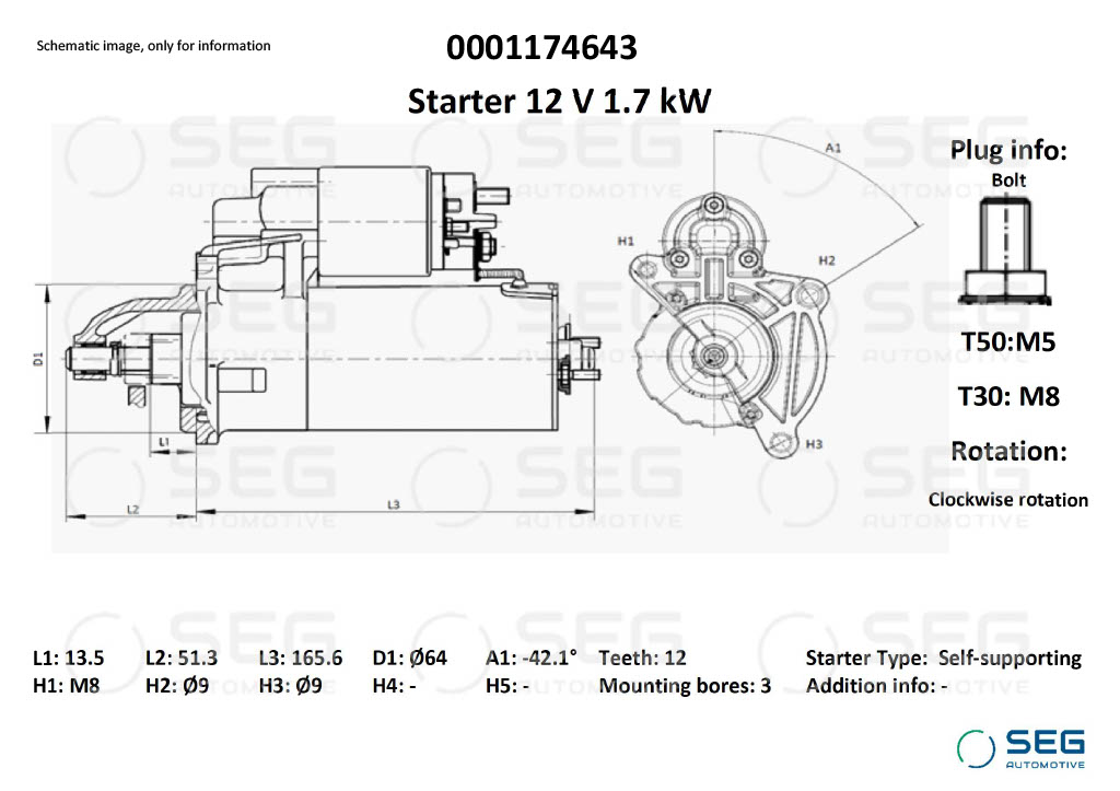 SEG Automotive 0001174643 - Štartér