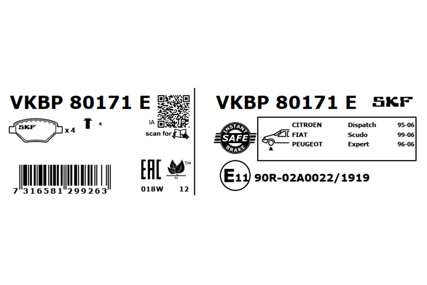 SKF VKBP 80171 E - Sada brzdových platničiek, vždy 4 kusy v sade
