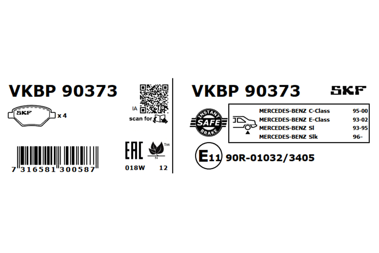 SKF VKBP 90373 - Sada brzdových platničiek, vždy 4 kusy v sade