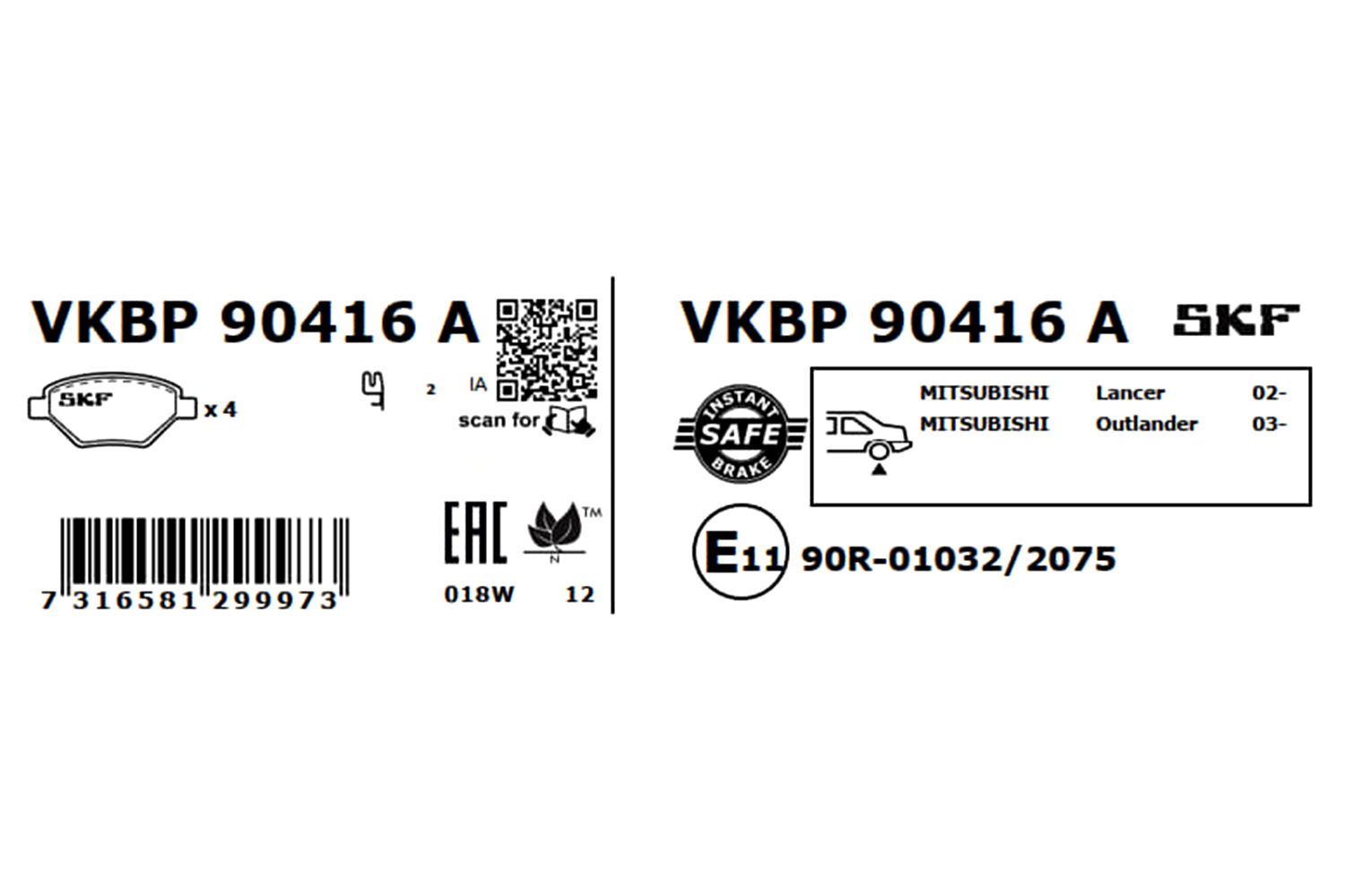 SKF VKBP 90416 A - Sada brzdových platničiek, vždy 4 kusy v sade