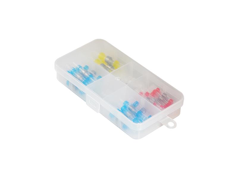 Sada smršťovacích kabelových spojek s cínem 60ks. Spojky jsou vhodné ke spojování kabeláže.Obsah balení:15x bílá pro kabely: 0,25 - 0,34 mm220x červená pro kabely: 0,5 - 1,0 mm220x modrá pro kabely: 1,5 - 2,5 mm25x žlutá pro kabely: 4 - 6 mm2