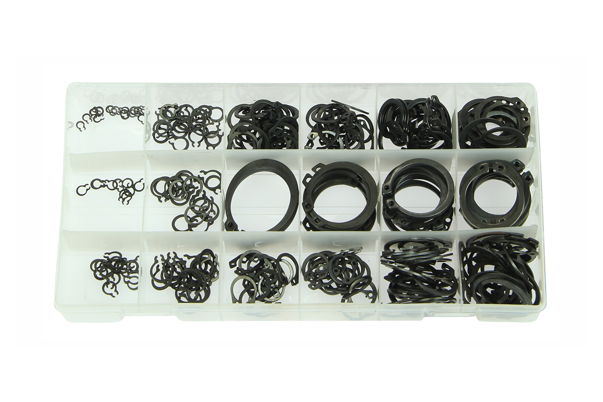 Pojistné kroužky na hřídel jsou vyráběny z pružinové oceli dle normy DIN 471. Po vložení pojistného kroužku do drážky neztrácí svoji pružnost. Průřez pojistného kroužku je uprostřed největší a jeho radiální šířka se k oběma koncům zmenšuje. Pojistný segerový kroužek je v ohybu nosníkem stejné pevnosti, a proto jsou působící síly po celém obvodu stejně velké. Pojistný kroužek si při každé deformaci zachová svůj přesný kruhový tvar a to díky jeho velké pružnosti. Vnější segerové pojistné kroužky se používají do drážek hřídelí, kolíků, čepu atd.*Sada obsahuje pojistné kroužky:*průměr 3 mm - 20 ks *průměr 4 mm - 10 ks *průměr 5 mm - 15 ks *průměr 6 mm - 25 ks *průměr 8 mm - 15 ks *průměr 9 mm - 20 ks *průměr 11 mm - 15 ks *průměr 12 mm - 15 ks *průměr 13 mm - 25 ks *průměr 14 mm - 15 ks *průměr 15 mm - 20 ks *průměr 19 mm - 25 ks *průměr 20 mm - 15 ks *průměr 22 mm - 20 ks *průměr 25 mm - 15 ks *průměr 26 mm - 15 ks *průměr 28 mm - 10 ks *průměr 32 mm - 5 ks *dodáváno v plastové kazetě