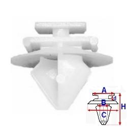 Tento diel je možné objednať iba po 10 kusoch. rozměry: A = 9,9mm - B = 8,1mm - C = 20,3mm - d = 1,7mm - H = 15,8mmbalení obsahuje: 10 kspopis: příchytka se zasouvací hlavouumístění příchytky: exteriéraplikace: dveřeaplikace: Fiat, Peugeot