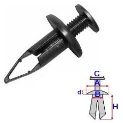 Tento diel je možné objednať iba po 10 kusoch. rozměry: A = 19,8mm - B = 8,7mm - C = 13mm - d = 3,9mm - H = 27,6mmbalení obsahuje: 10 kspopis: příchytka s plastovým šroubemumístění příchytky: univerzálnívýskyt: Toyota