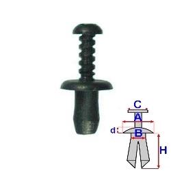 Tento diel je možné objednať iba po 25 kusoch. rozměry: A = 12,4mm - B = 6mm - C = 7mm - d = 2,1mm - H = 11,5mmbalení obsahuje: 25 kspopis: příchytka s plastovým šroubemumístění příchytky: univerzálnívýskyt: Lancia, Renault, Seat