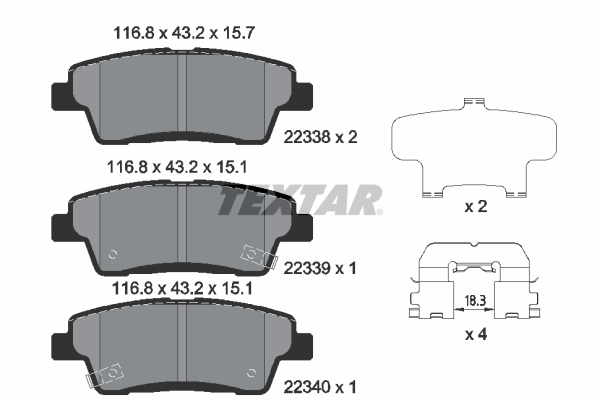 TEXTAR 2233801 - Sada brzdových platničiek, vždy 4 kusy v sade