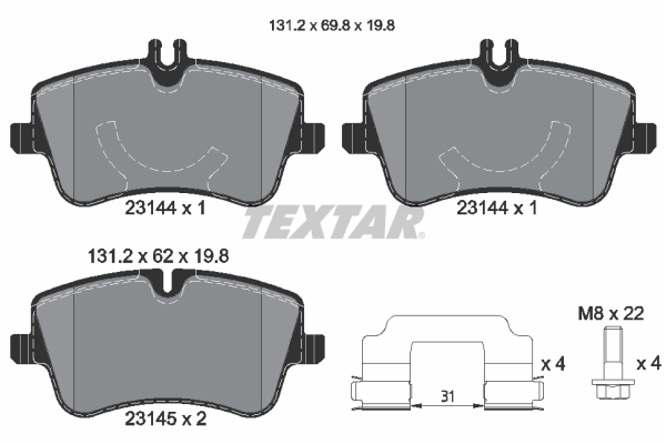 TEXTAR 2314401 Q+ - Sada brzdových platničiek, vždy 4 kusy v sade