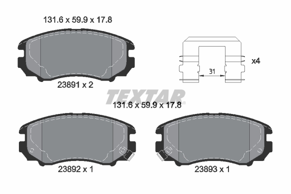 TEXTAR 2389105 Q+ - Sada brzdových platničiek, vždy 4 kusy v sade