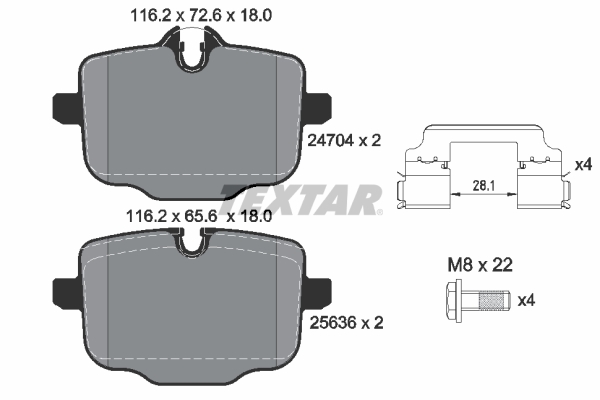 TEXTAR 2470401 Q+ - Sada brzdových platničiek, vždy 4 kusy v sade