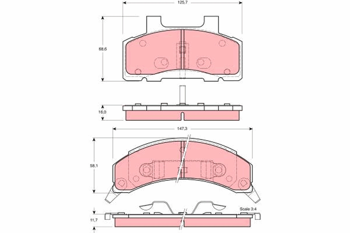 TRW GDB4005 - Sada brzdových platničiek, vždy 4 kusy v sade