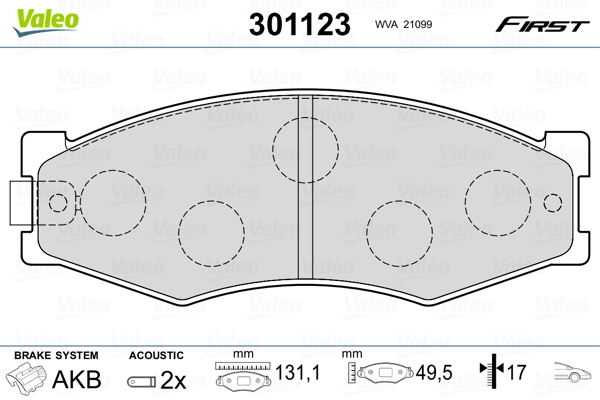 VALEO 301123 - Sada brzdových platničiek, vždy 4 kusy v sade
