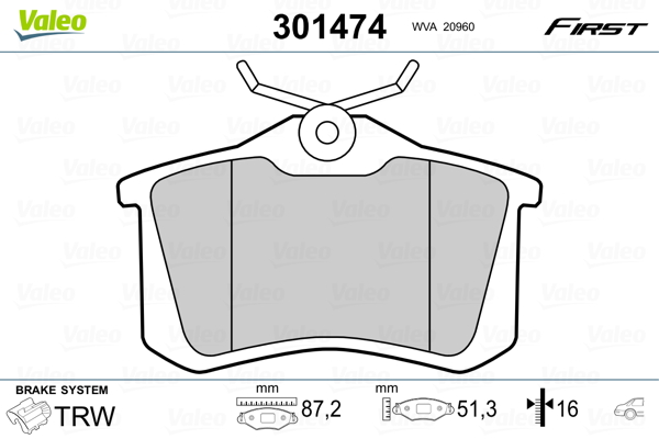 VALEO 301474 - Sada brzdových platničiek, vždy 4 kusy v sade