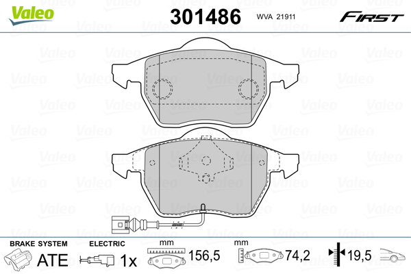 VALEO 301486 - Sada brzdových platničiek, vždy 4 kusy v sade