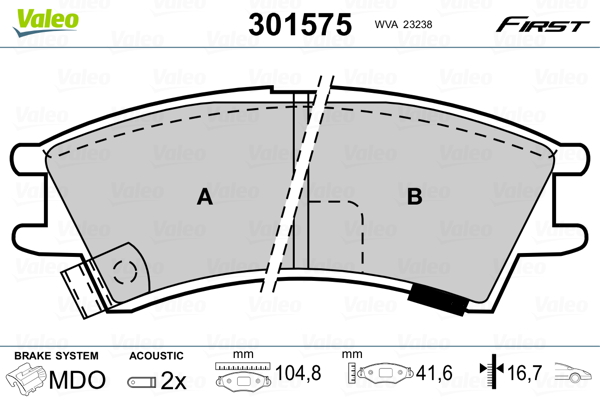 VALEO 301575 - Sada brzdových platničiek, vždy 4 kusy v sade