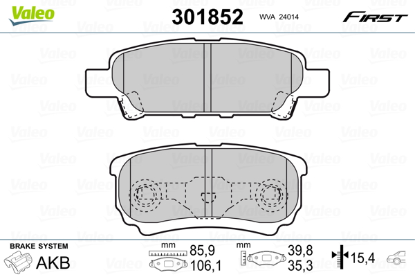 VALEO 301852 - Sada brzdových platničiek, vždy 4 kusy v sade