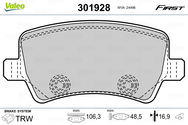VALEO 301928 - Sada brzdových platničiek, vždy 4 kusy v sade