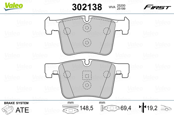 VALEO 302138 - Sada brzdových platničiek, vždy 4 kusy v sade