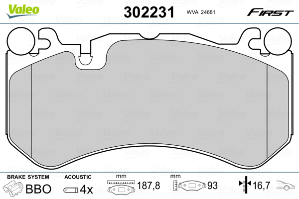 VALEO 302231 - Sada brzdových platničiek, vždy 4 kusy v sade