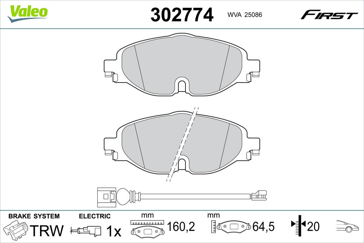 VALEO 302774 - Sada brzdových platničiek, vždy 4 kusy v sade