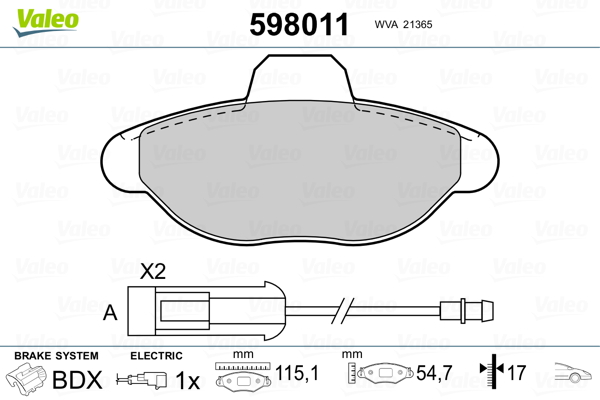 VALEO 598011 - Sada brzdových platničiek, vždy 4 kusy v sade