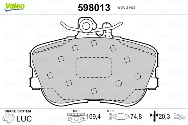 VALEO 598013 - Sada brzdových platničiek, vždy 4 kusy v sade