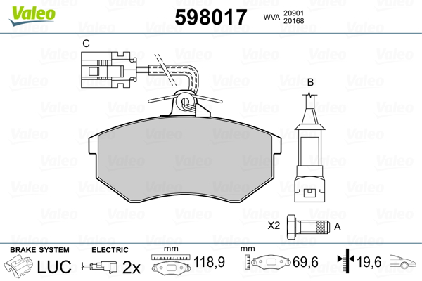 VALEO 598017 - Sada brzdových platničiek, vždy 4 kusy v sade