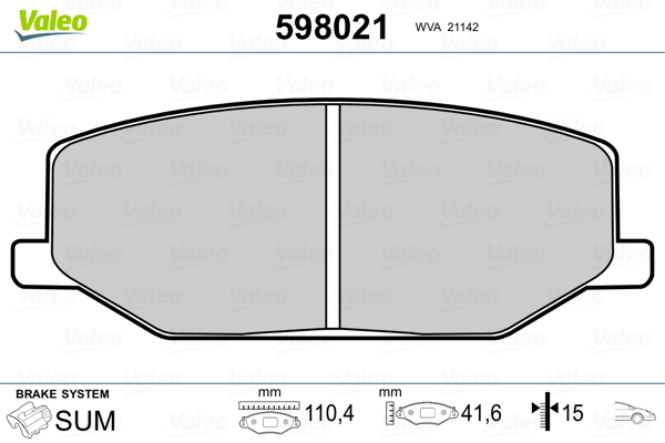 VALEO 598021 - Sada brzdových platničiek, vždy 4 kusy v sade