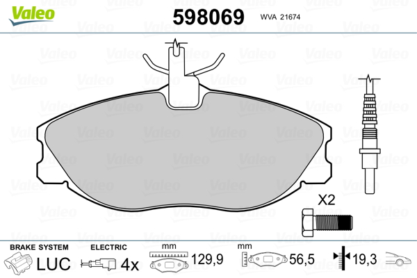 VALEO 598069 - Sada brzdových platničiek, vždy 4 kusy v sade