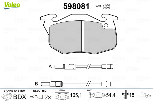 VALEO 598081 - Sada brzdových platničiek, vždy 4 kusy v sade