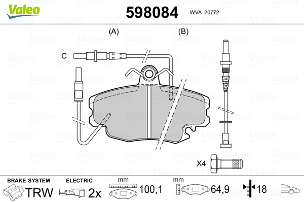 VALEO 598084 - Sada brzdových platničiek, vždy 4 kusy v sade