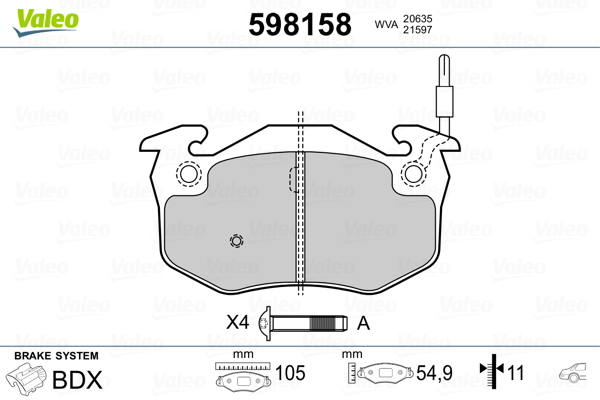 VALEO 598158 - Sada brzdových platničiek, vždy 4 kusy v sade