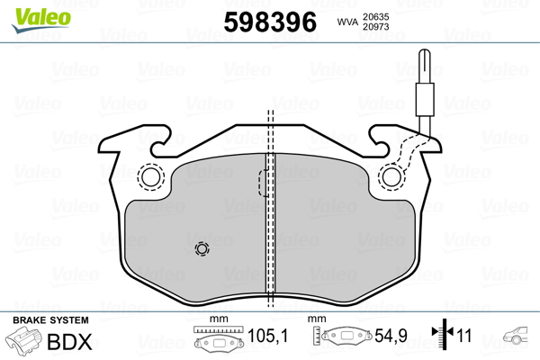 VALEO 598396 - Sada brzdových platničiek, vždy 4 kusy v sade