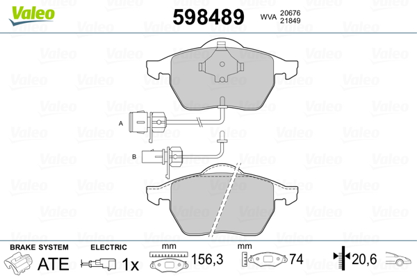 VALEO 598489 - Sada brzdových platničiek, vždy 4 kusy v sade